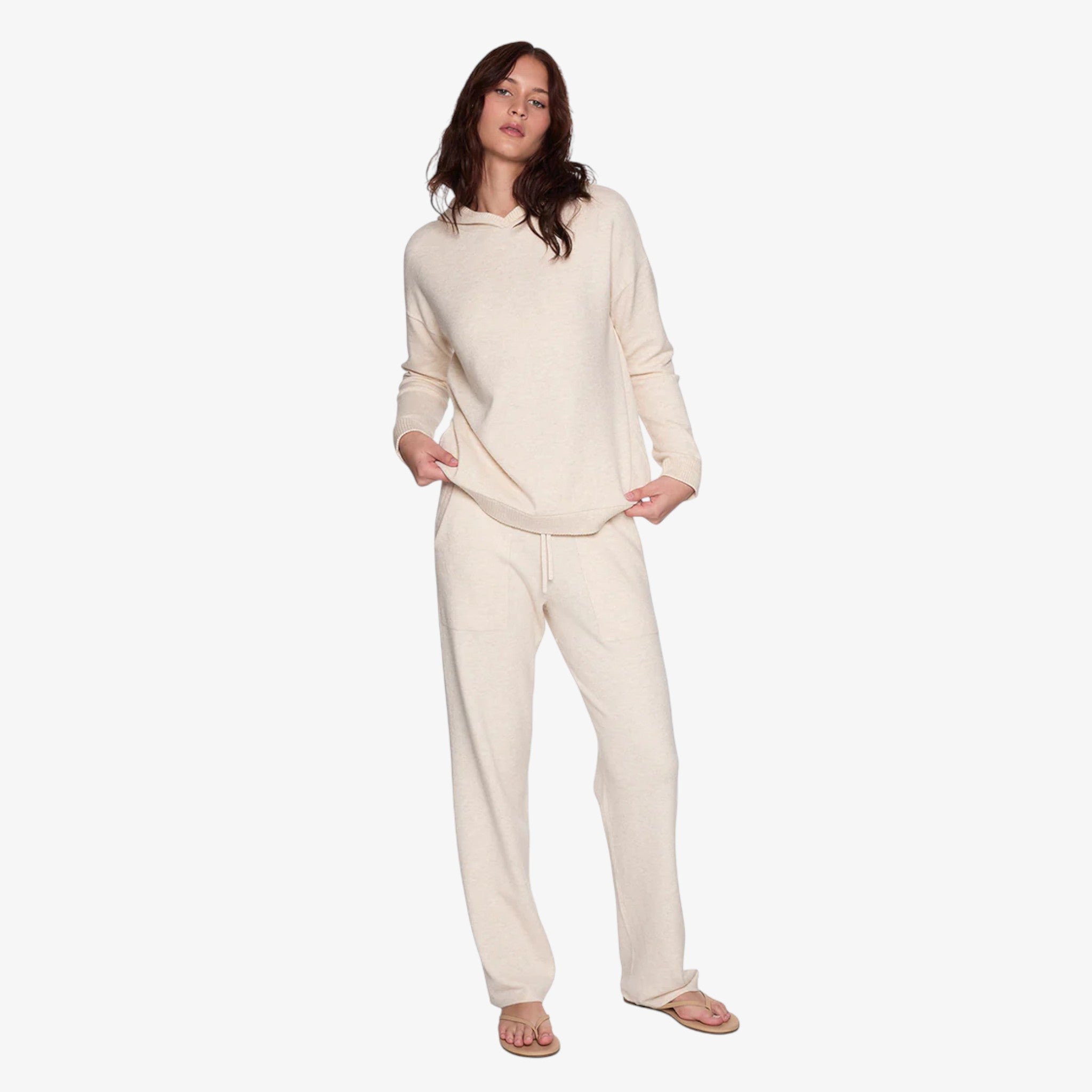 Cozy sweater-knit hoodie designed for effortless everyday comfort with a soft, relaxed drape.
