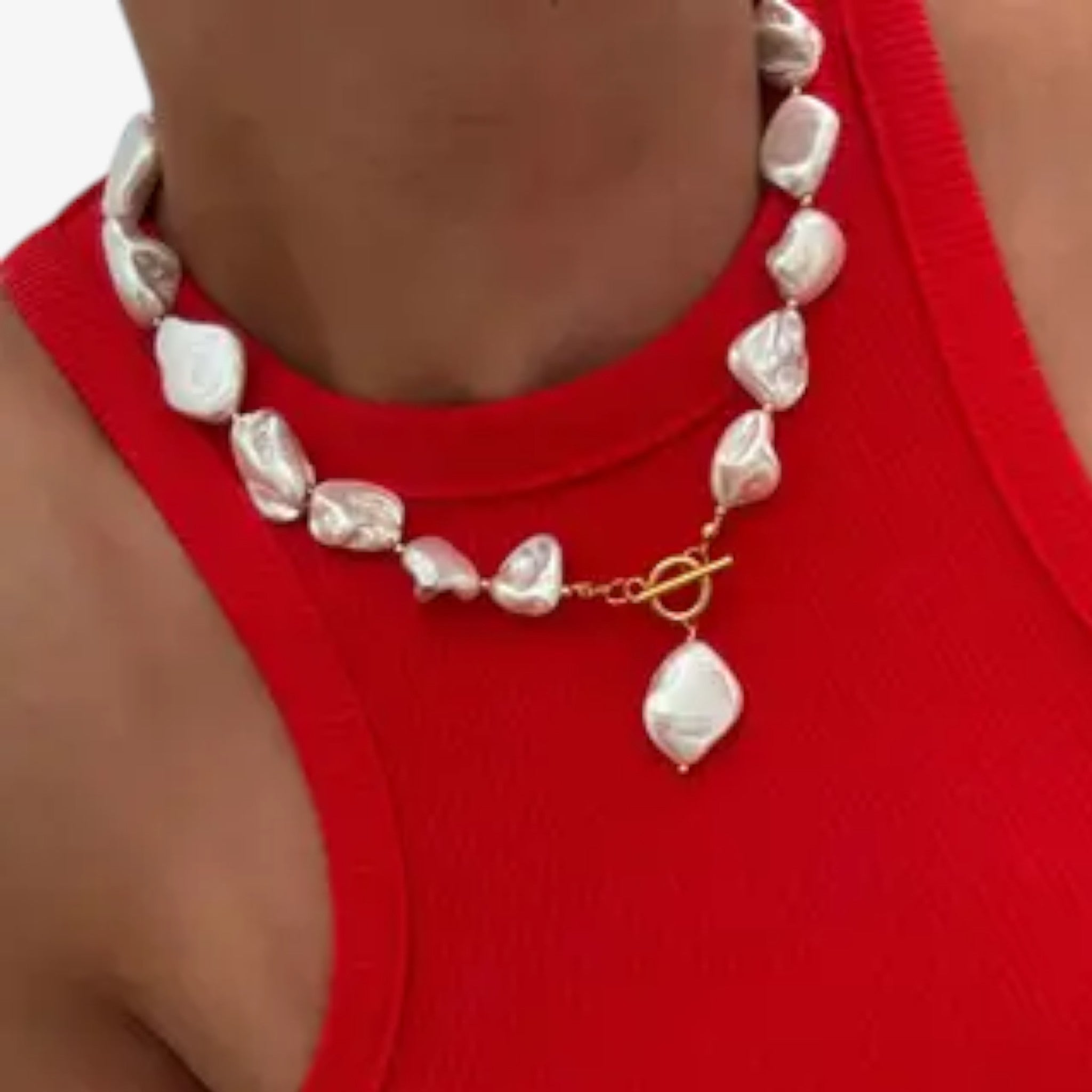 • Design: Chunky irregular pearl strand with drop pearl accent