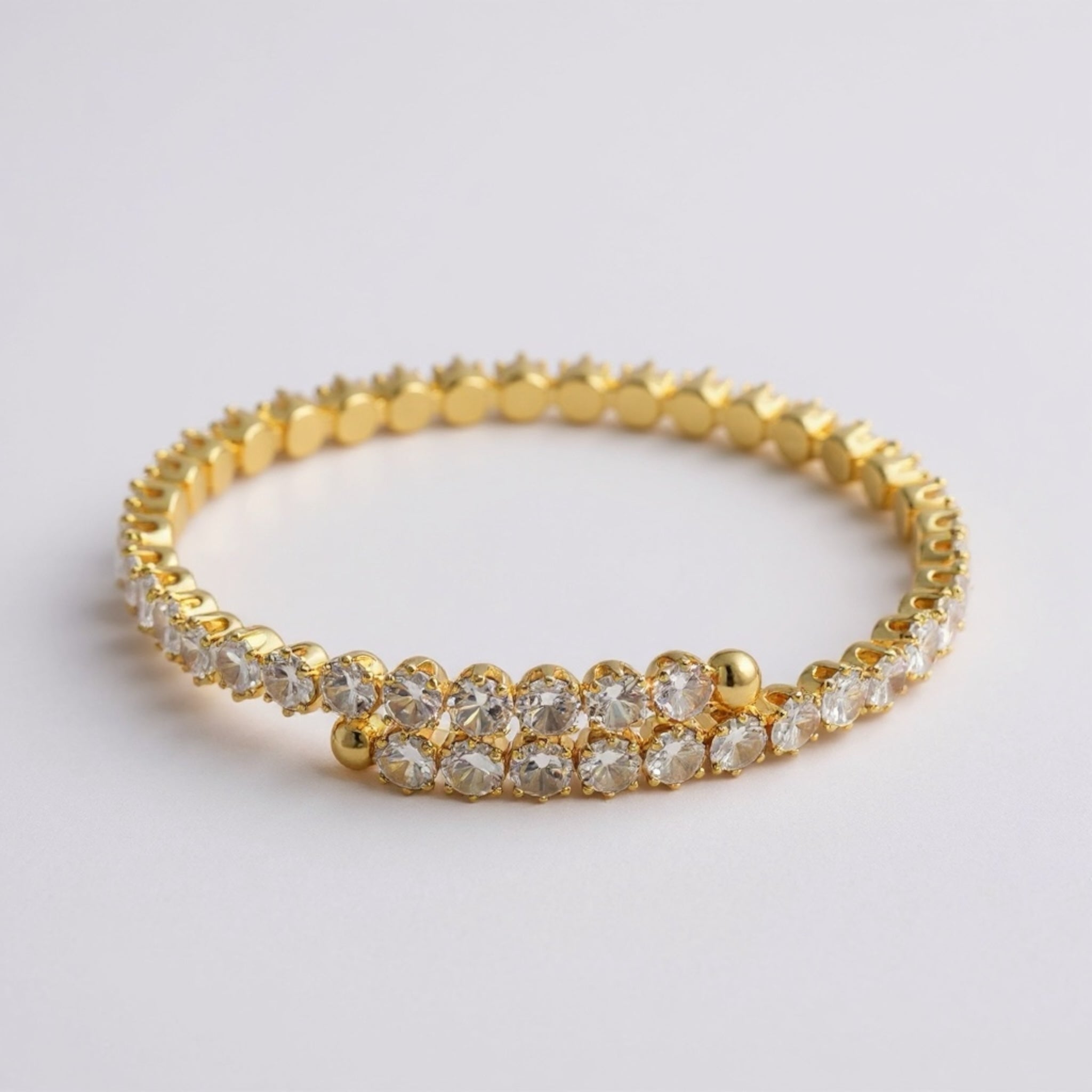 Shimmering gold-plated tennis bracelet with dazzling CZ stones and a chic wrap-around design that elevates any look day or night.