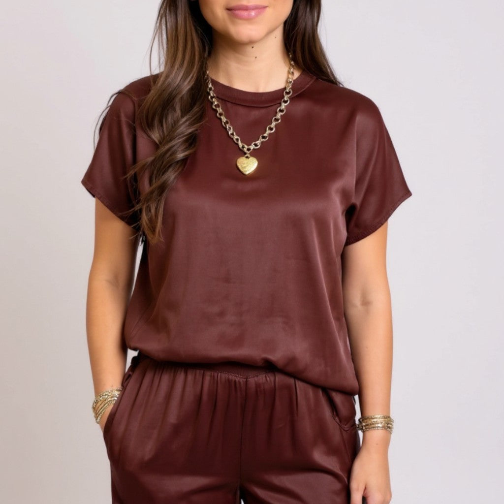 • Style Tip: Pairs perfectly with matching satin bottoms or denim