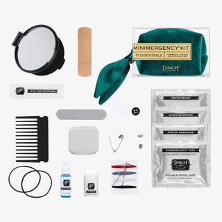 Pink mini emergency puffer kit with 'Minimergency Kit' label on a white background
