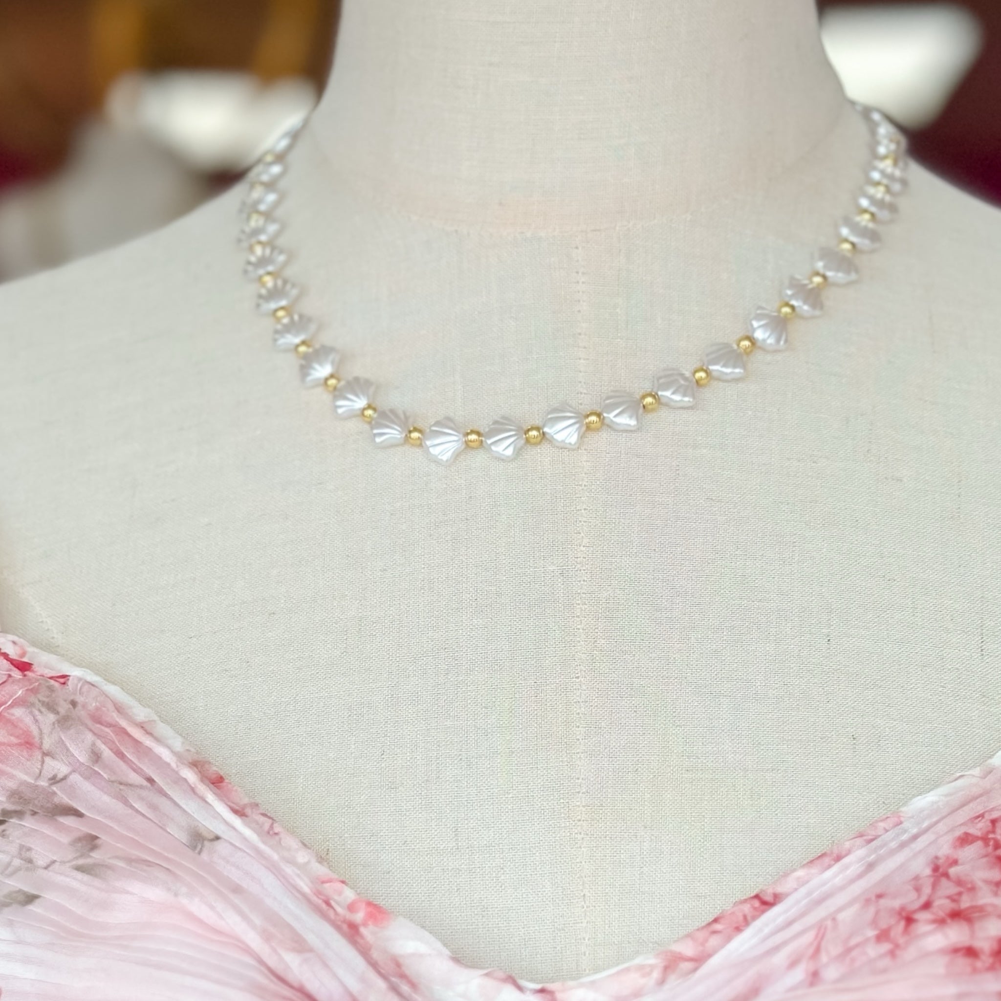 Delicate seashell necklace with gold bead accents that brings coastal charm and timeless elegance to any outfit.