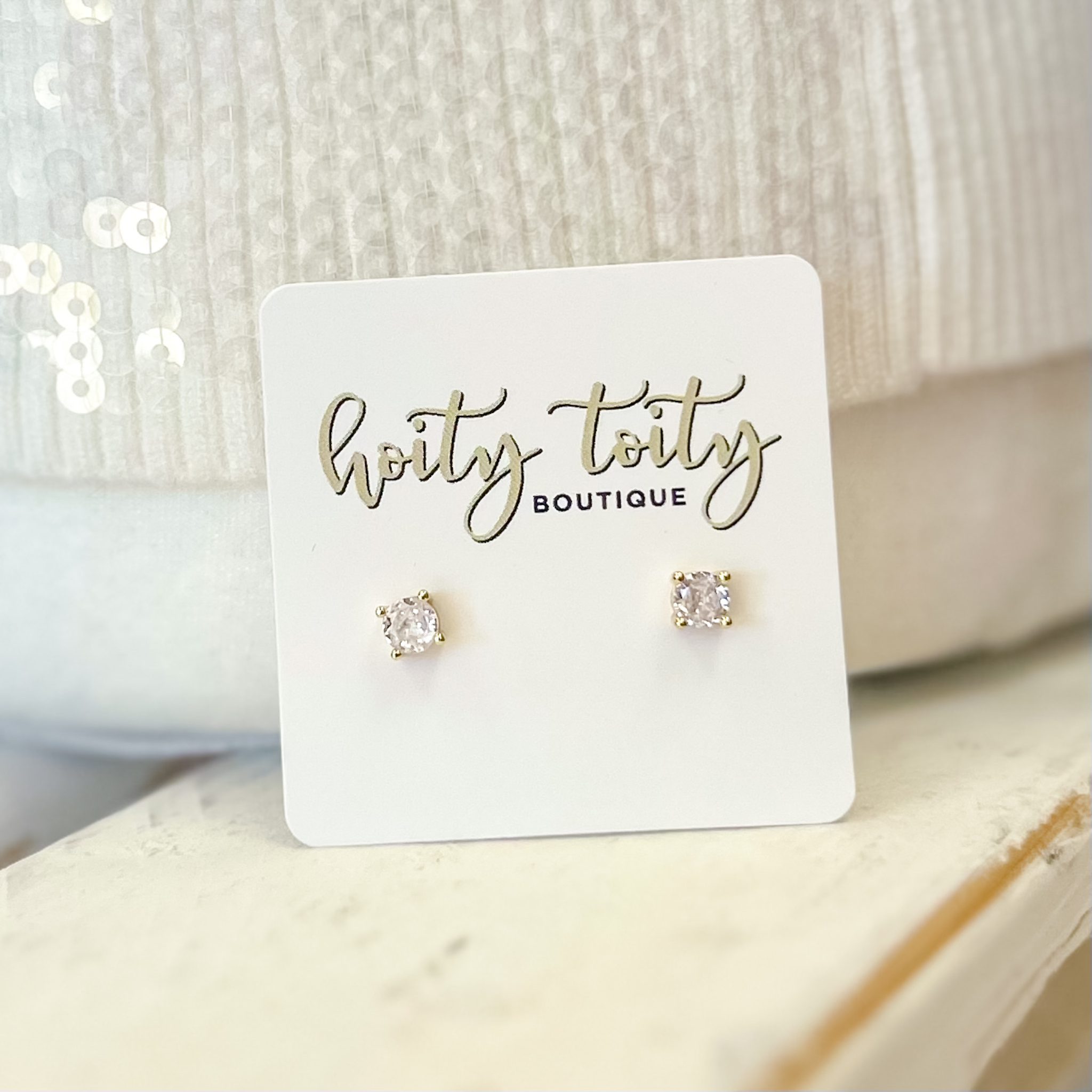 Classic .20 carat sparkle stud earrings offering timeless shine in a delicate, everyday size that pairs effortlessly with everything.