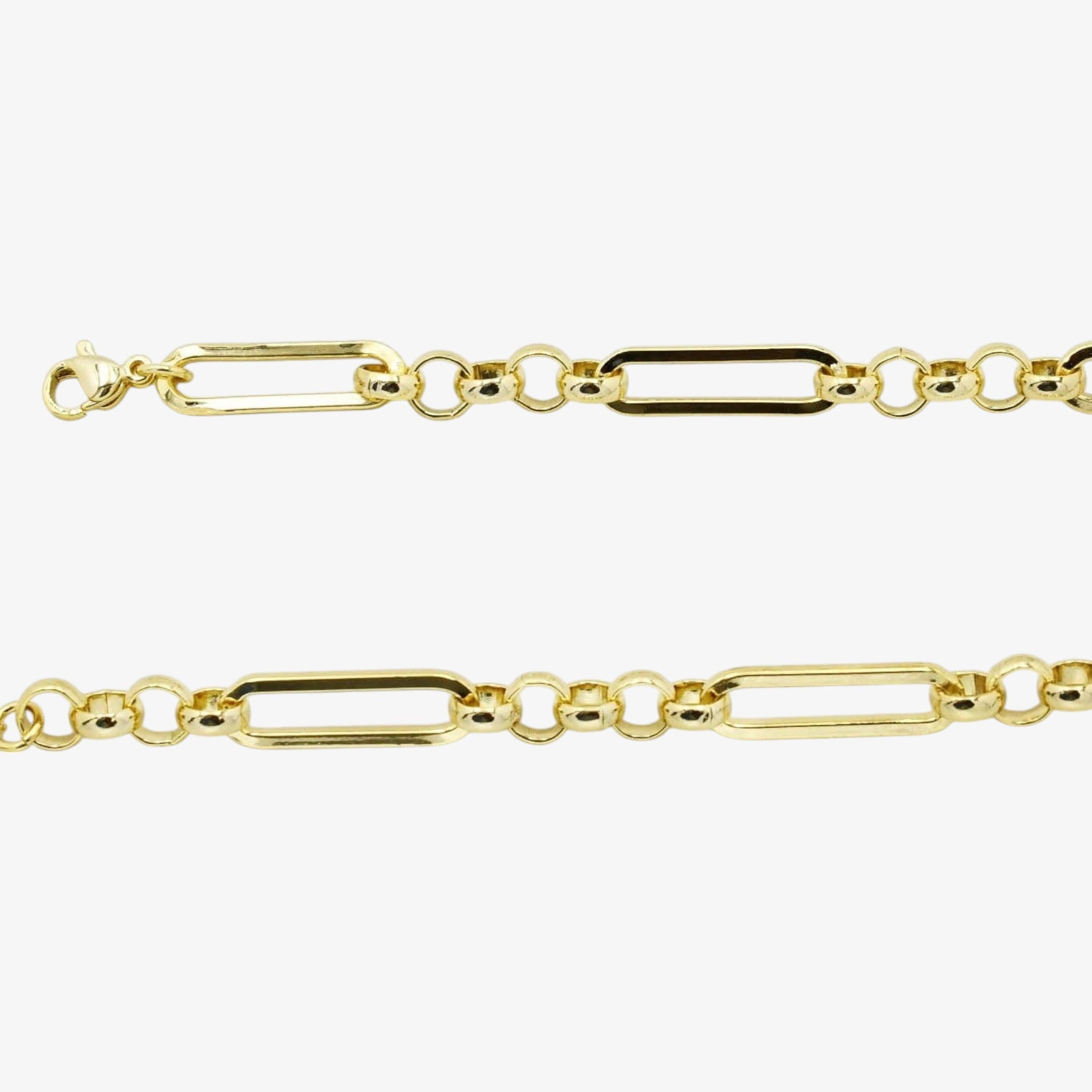 Chic and minimal gold Rolo chain necklace with long oval links, perfect for layering or wearing solo.
