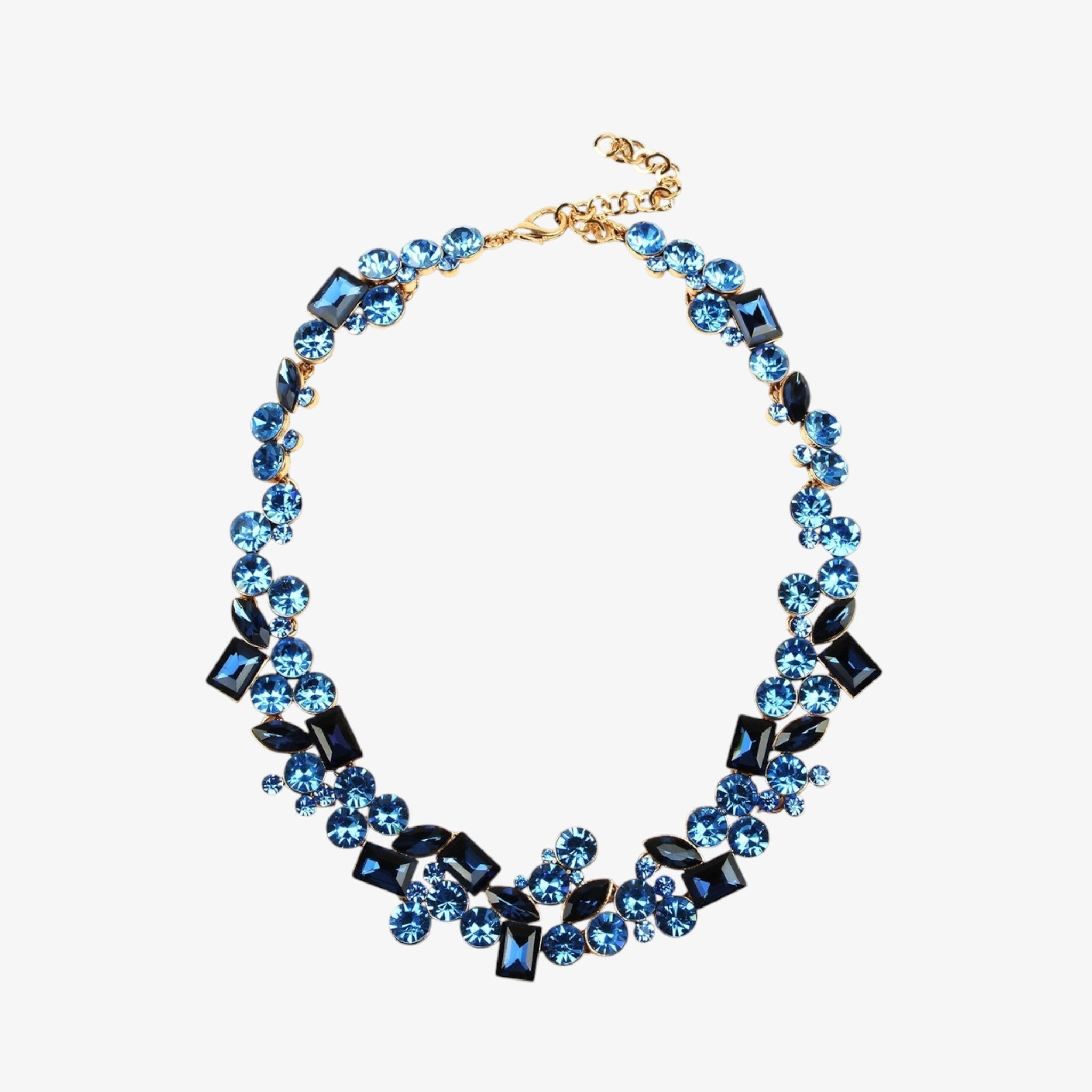 Blue crystal statement necklace brings bold sparkle and luxe drama with mixed-cut stones designed to turn heads day or night.