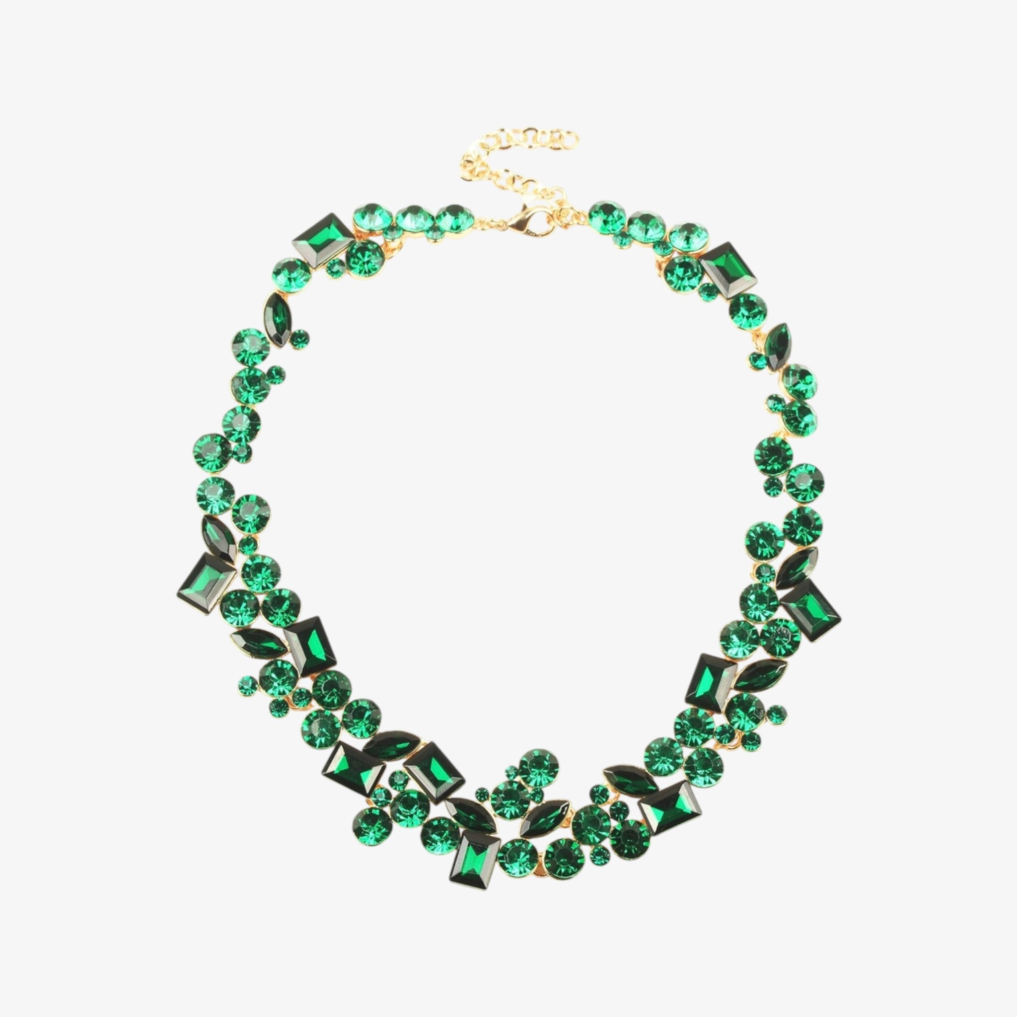 A celebration of bold sophistication, the Rowan Necklace captivates with its exquisite arrangement of rich emerald-green crystals. Lobster clasp