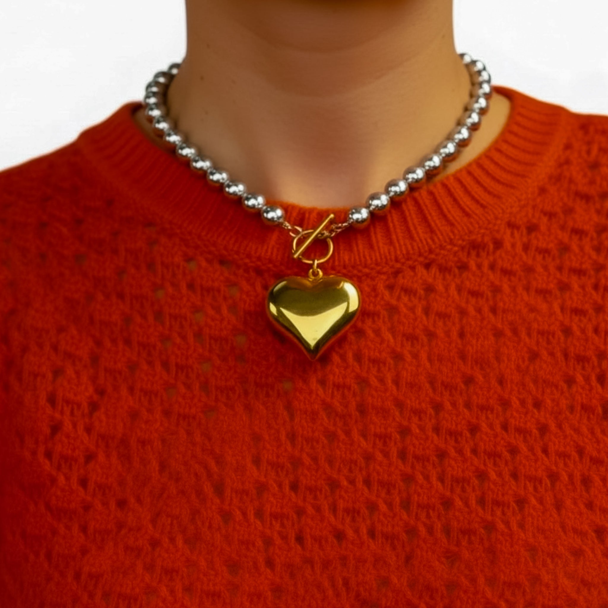 Glam Heart necklace features a bold heart pendant with a high-shine gold finish, creating a statement look that adds polish and personality to everyday outfits.