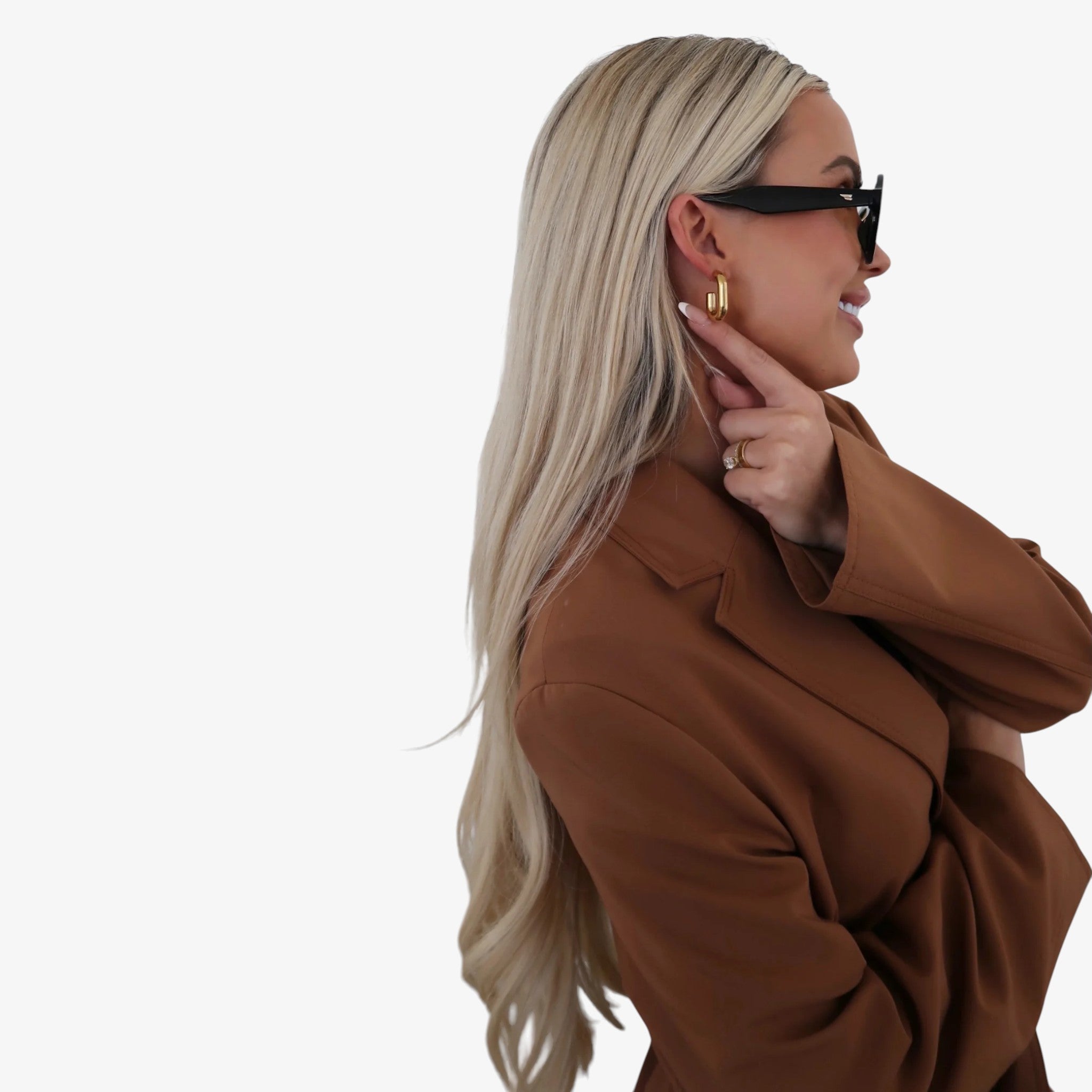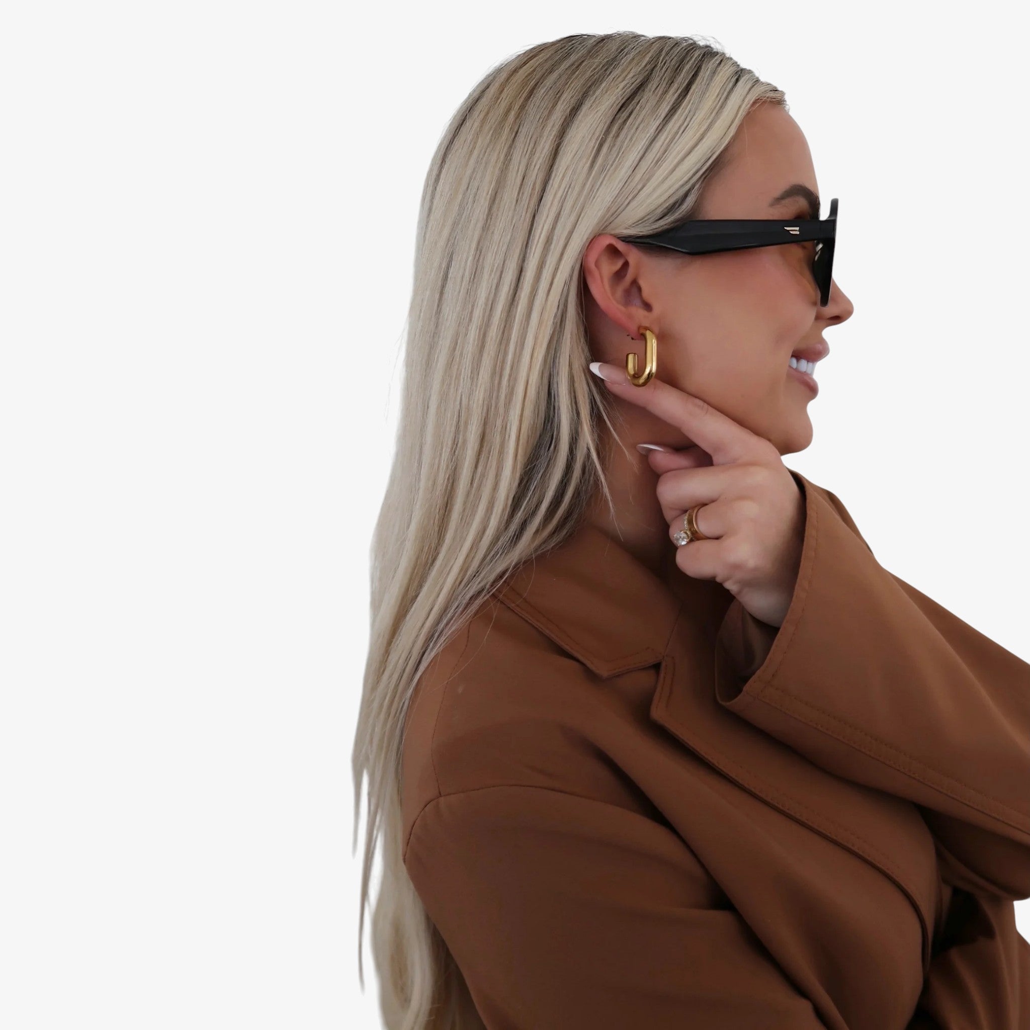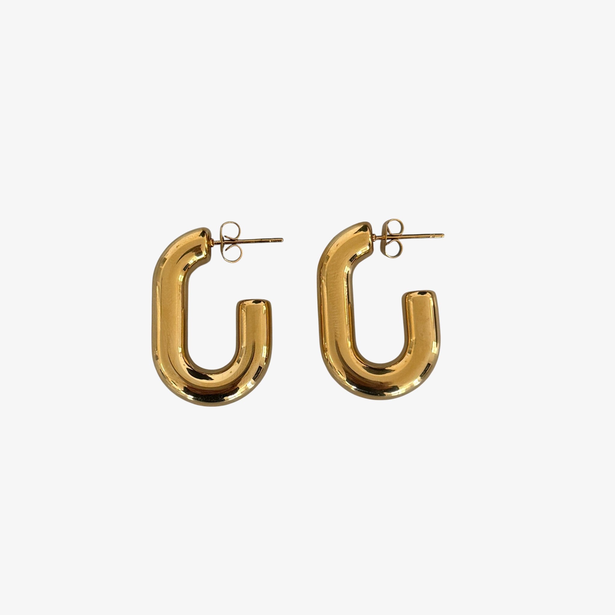Small oval hoop earrings designed with a sleek, modern curve and polished gold finish that elevates everyday outfits with effortless style.