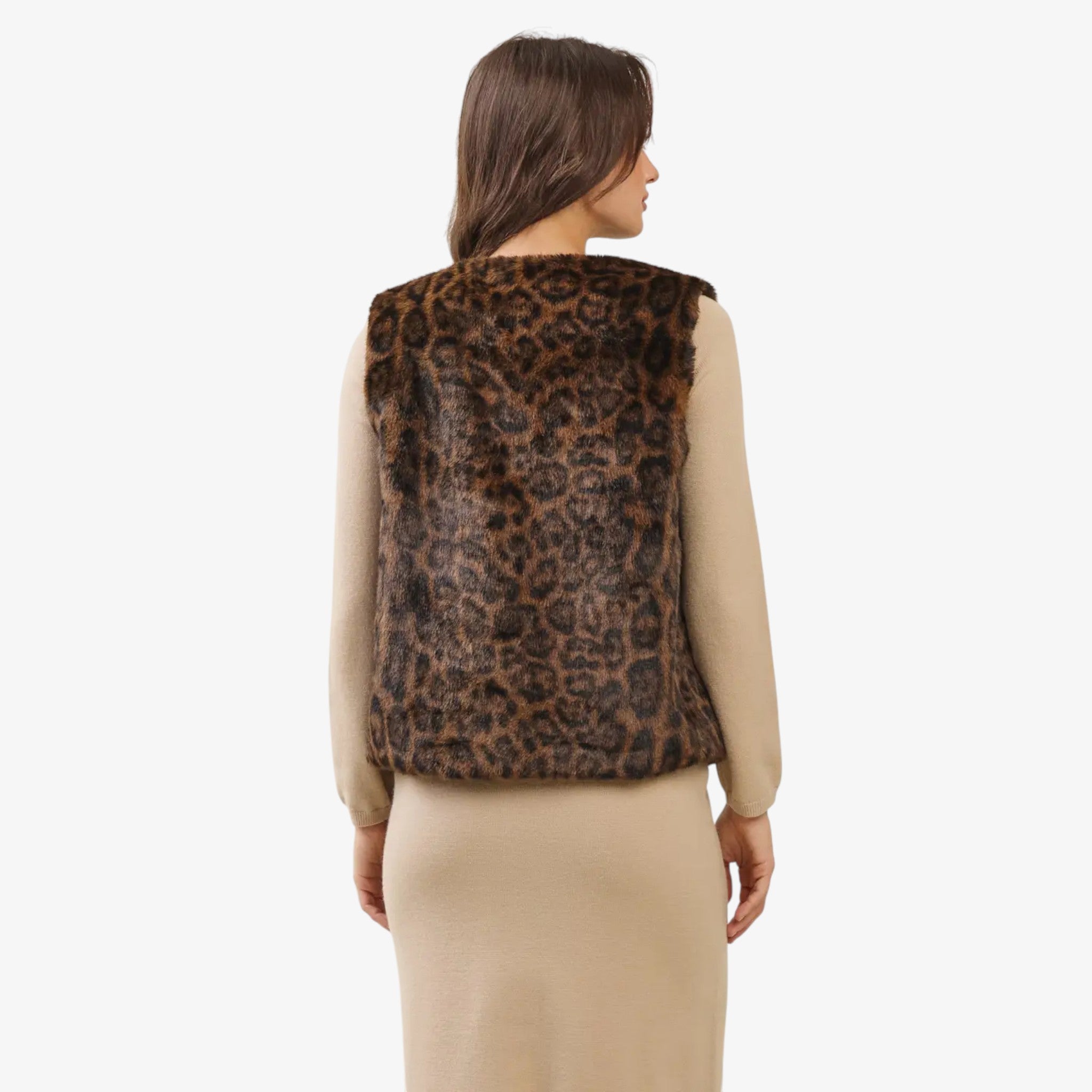 Leopard faux fur vest with a soft, luxe feel that adds a chic layered touch to any fall or winter outfit.