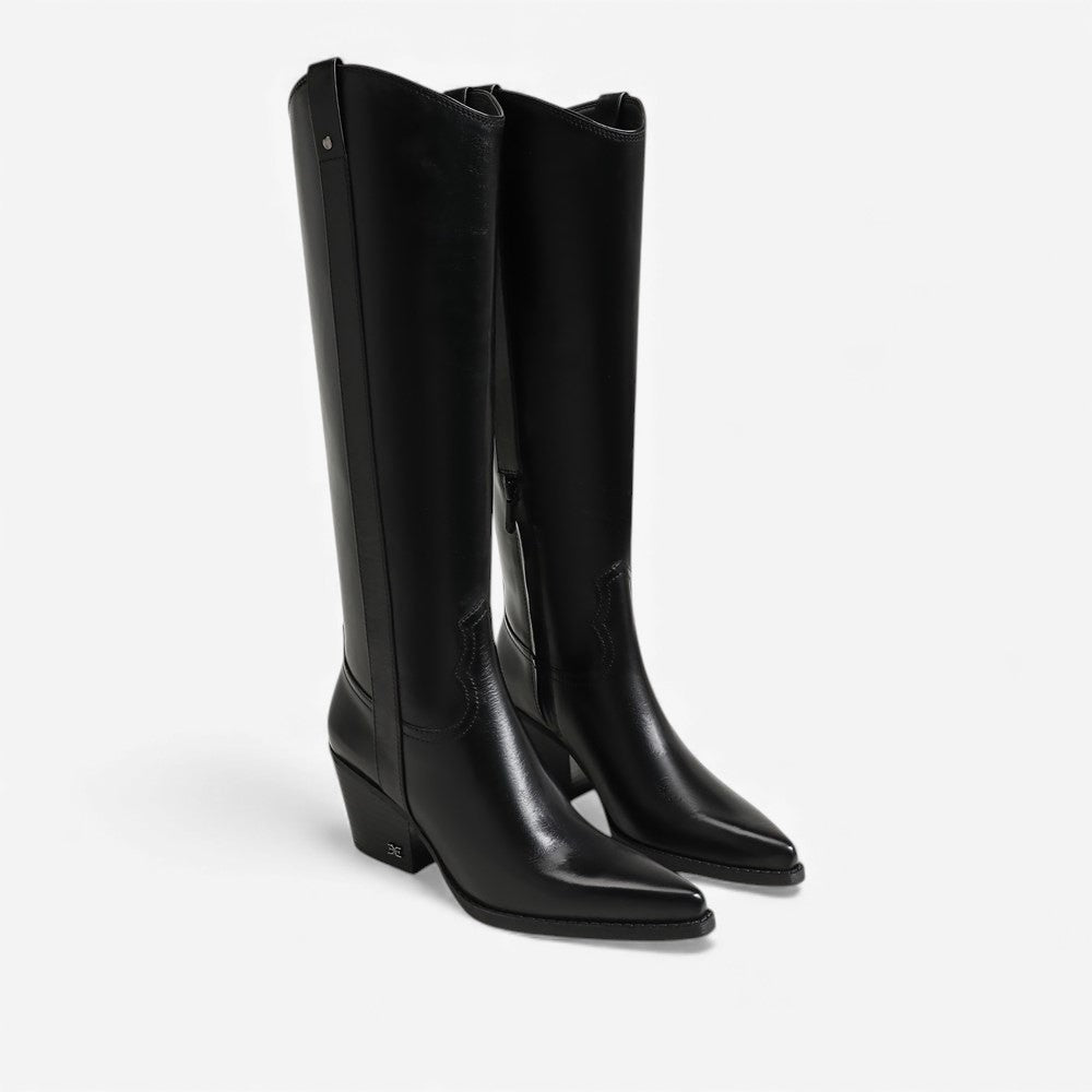 The Sam Edelman Wyatt Boot is a polished knee-high leather design with a chic stacked heel and flattering fitted shaft.