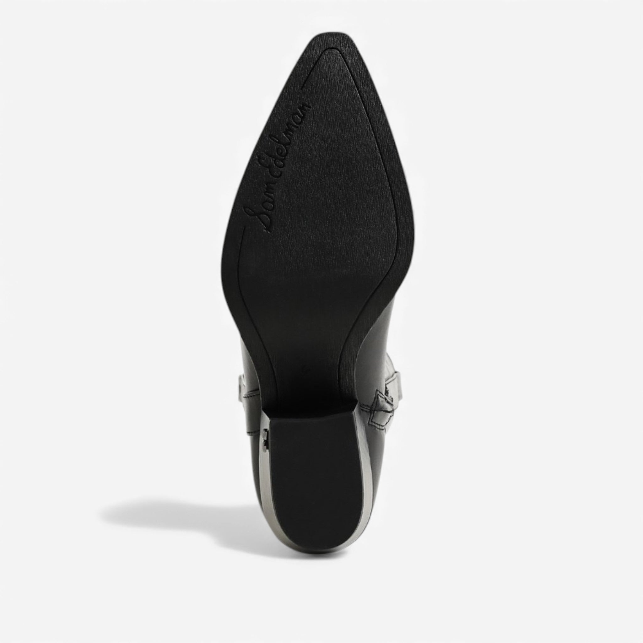 - Stacked block heel adds height and stability