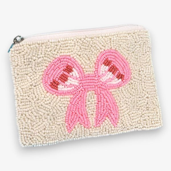 The perfect gift for your Bow Lover! Handmade with love, it showcases vibrant seed beads in a rainbow or white color and a playful "bow" in the center. Perfect for parties or gifting, this pouch adds a festive touch to any outfit.