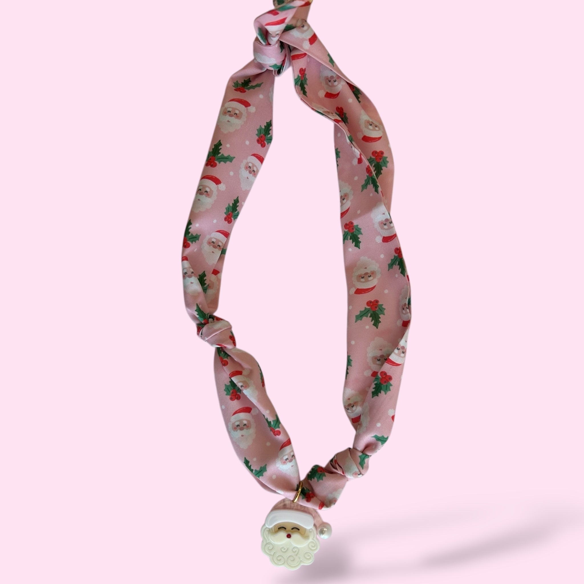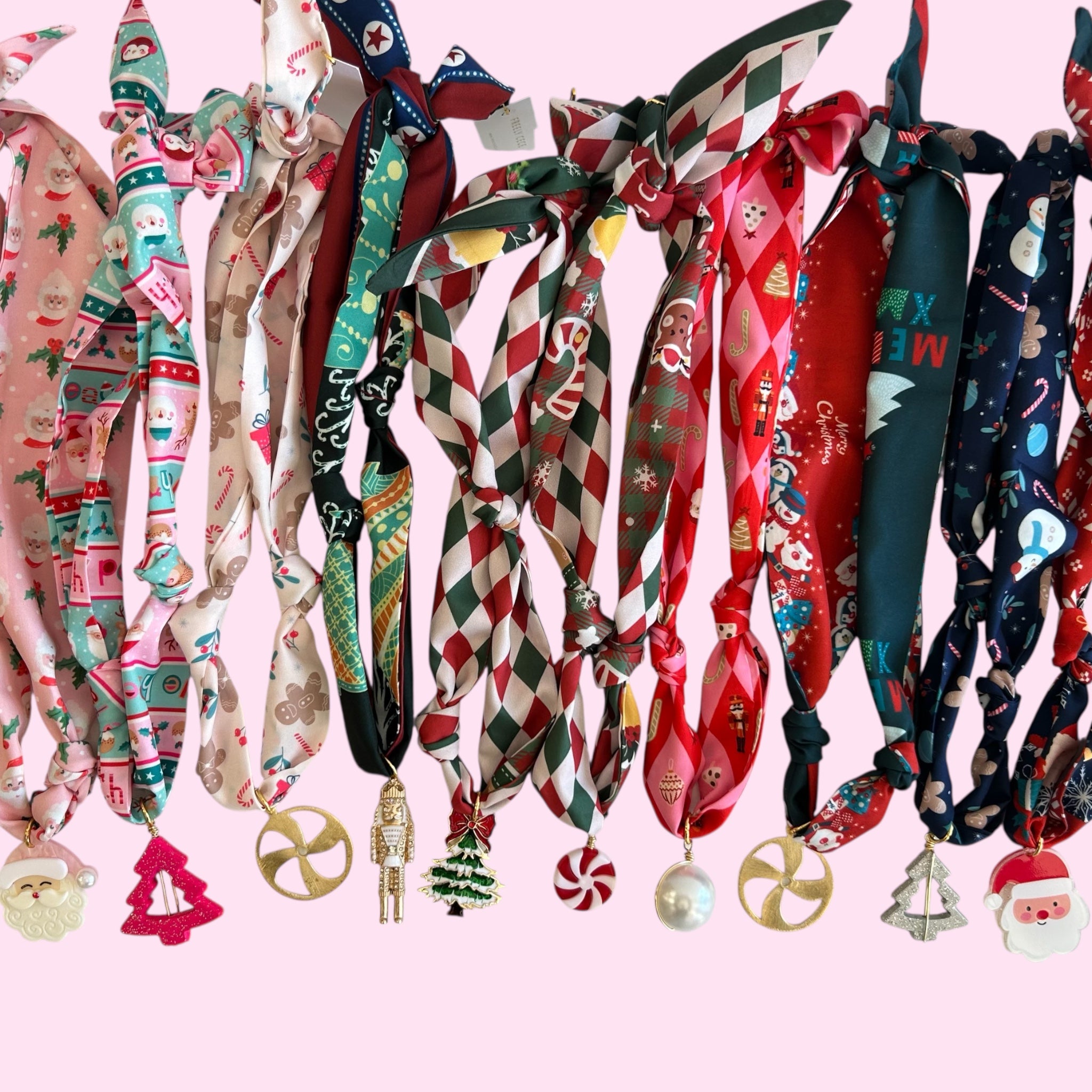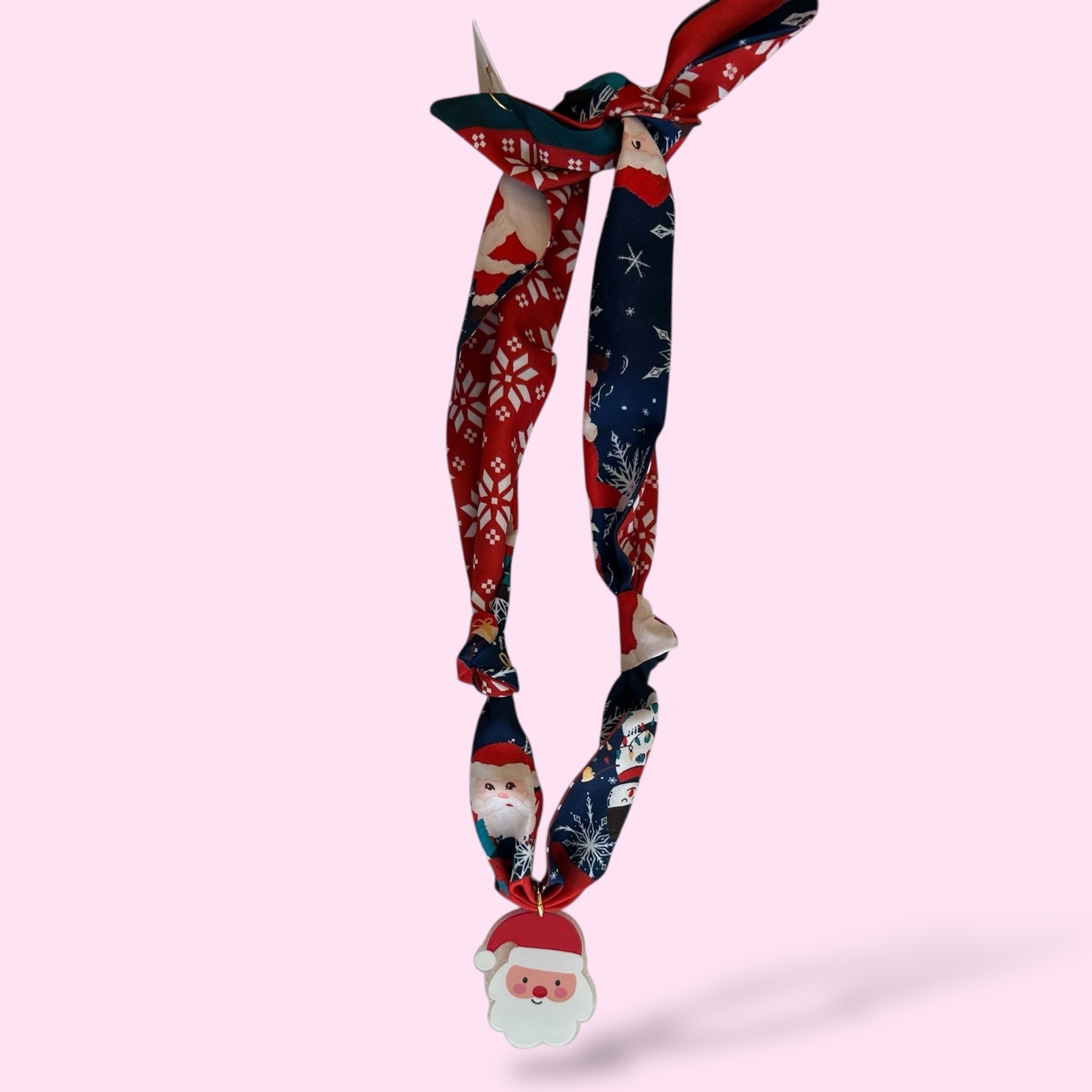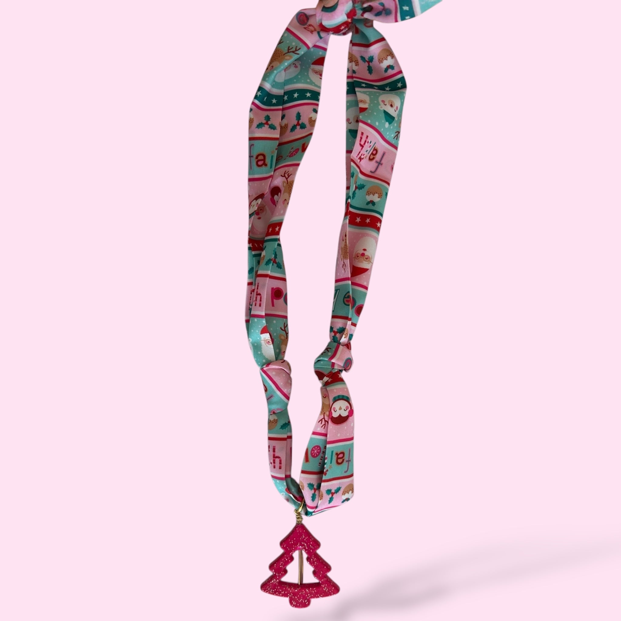Festive Christmas Scarf Necklace combines playful holiday prints with statement charms for a fun, wearable accessory that doubles as a necklace and scarf.