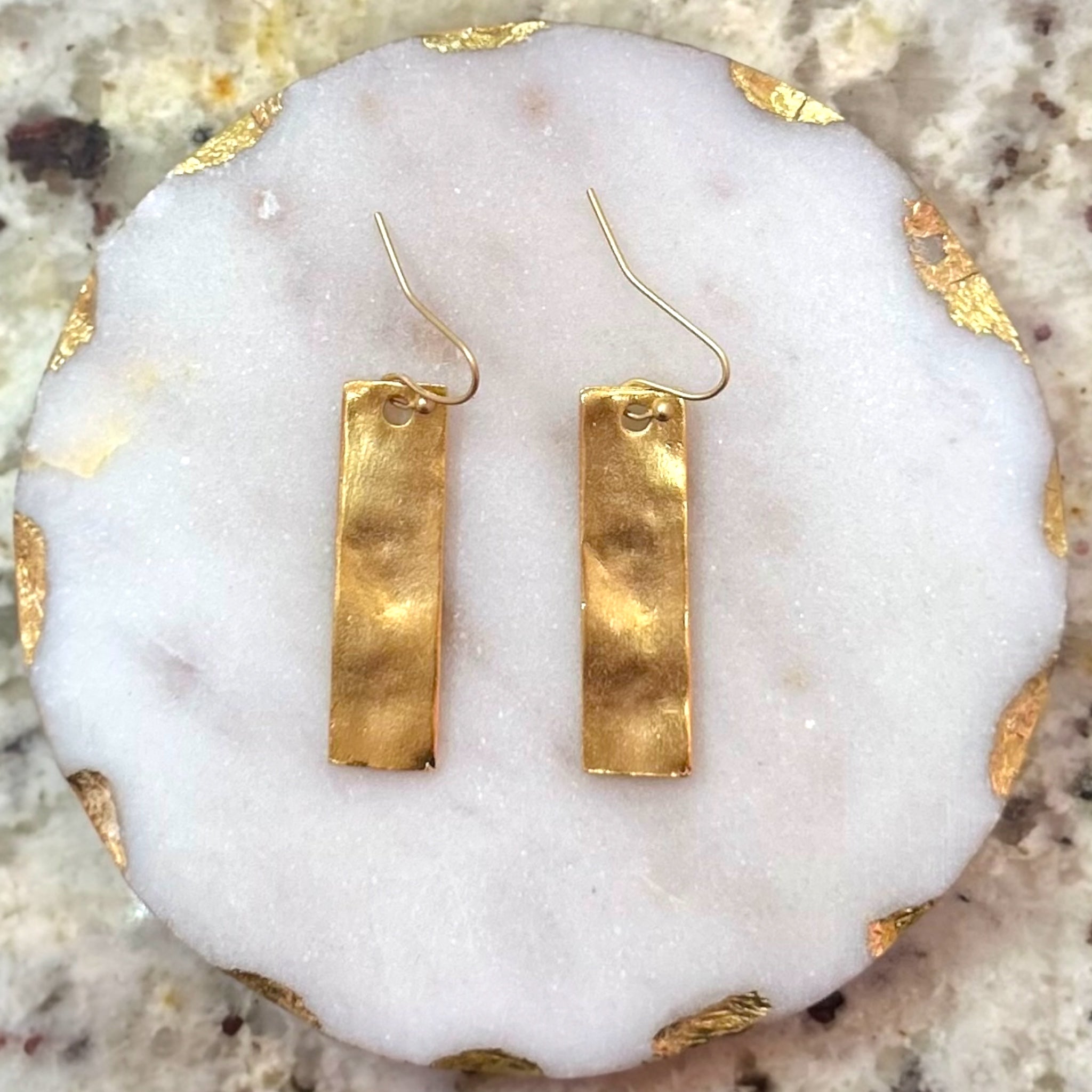 Long narrow rectangle gold earrings designed with a sleek drop silhouette that adds modern elegance and effortless length to any look.